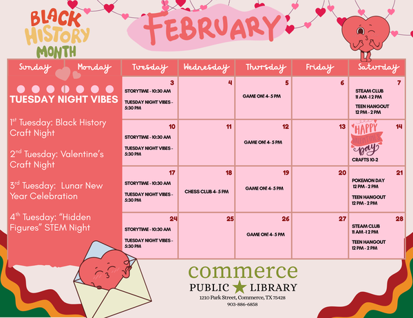 The Commerce Public Library is operated by The Friends of the Commerce Public Library, a charitable, non-profit corporation. All unrestricted donations will be used for purposes consistent with its 501c-3 tax-exempt status as determined by the Friends' board.