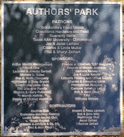 In 2002, a commemorative stone with a plaque containing the names of financial contributors to Authors' Park completed the three-year project. Many social clubs, businesses and individuals gave freely of their time and money to make the park a beautiful addition to Commerce.